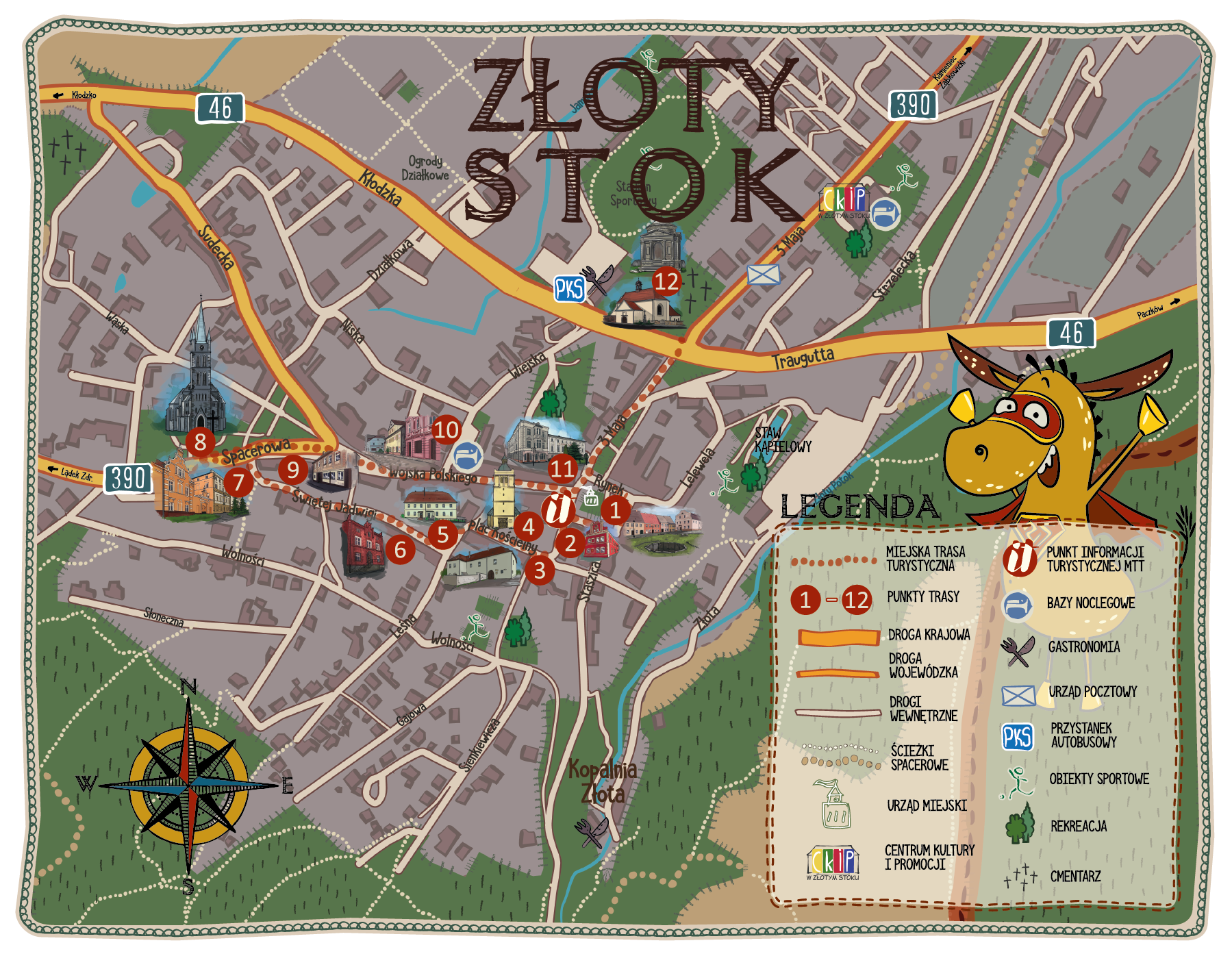 Piesza trasa po mieście Złoty Stok ukazująca najważniejsze
