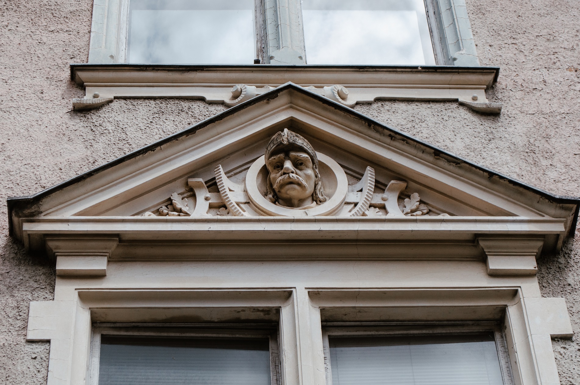ul. Wojska Polskiego medaliony z głowami górników i znakiem górniczym.